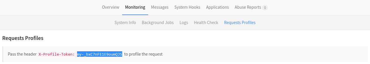 • curl --header 'X-Profile-Token: <token>' https://gitlab.example.com/group/project